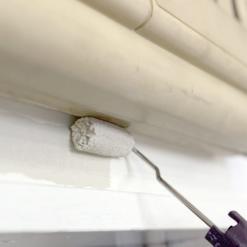 ・ 入隅(2つの壁の面が出合う内側部分)や、雨どいの側面の塗装に
